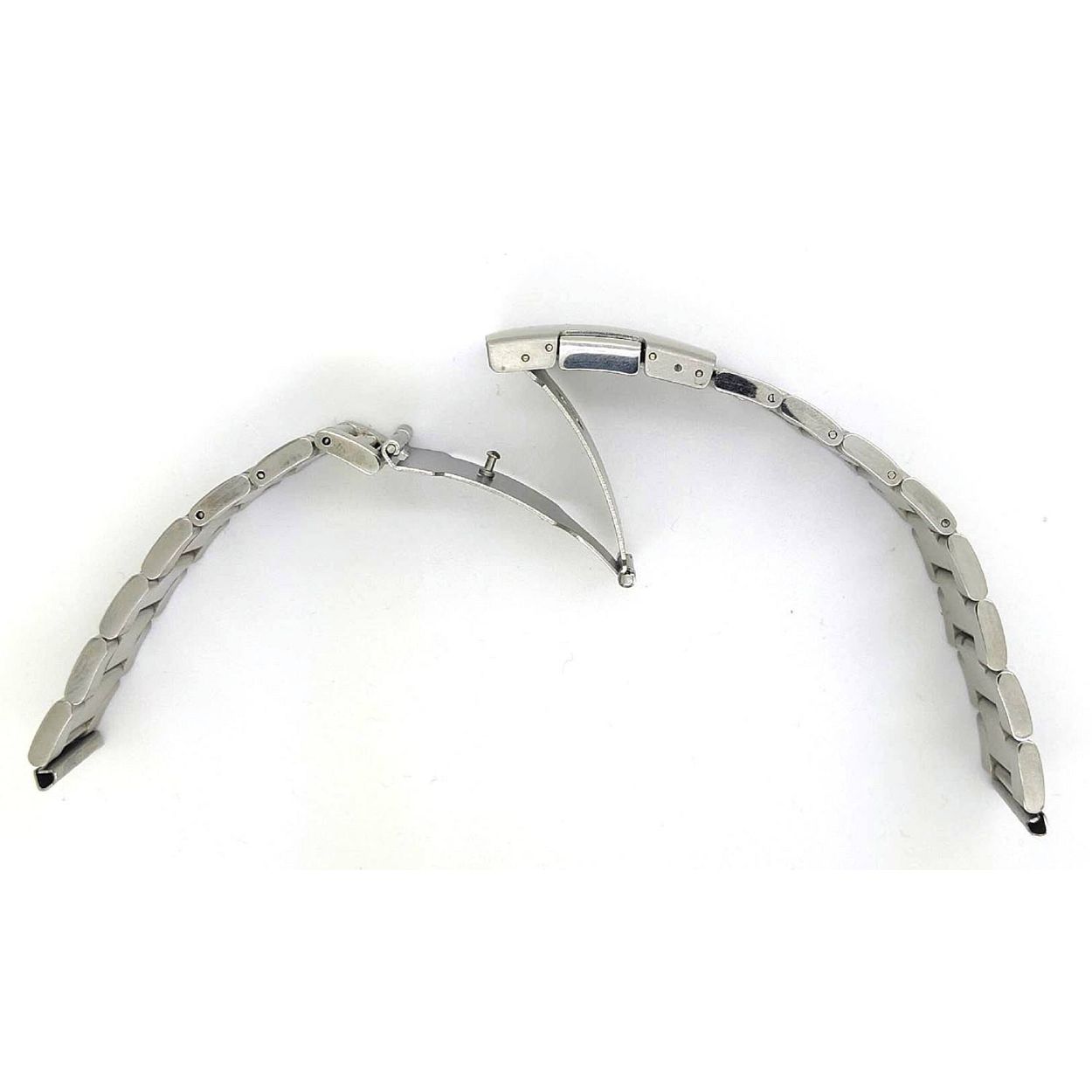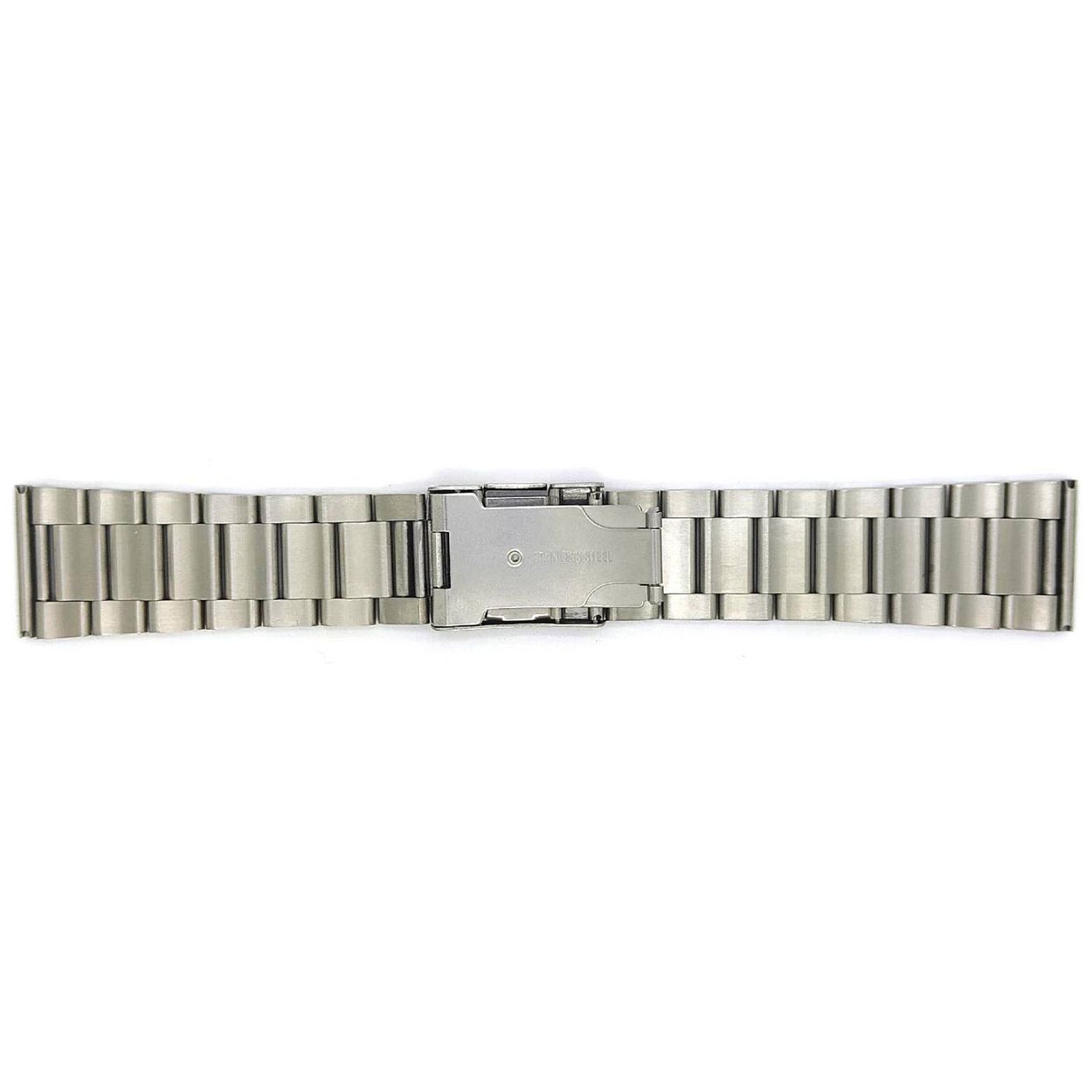 Massief roestvrij staal, horlogeband met mat en gepolijste schakels en dubbele vouwsluiting.