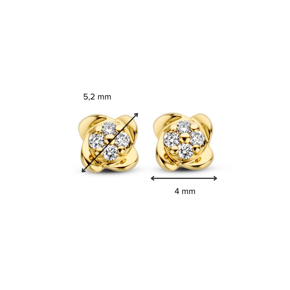 Geelgouden oorstekers in bloemdesign, gezet met fijne diamanten.