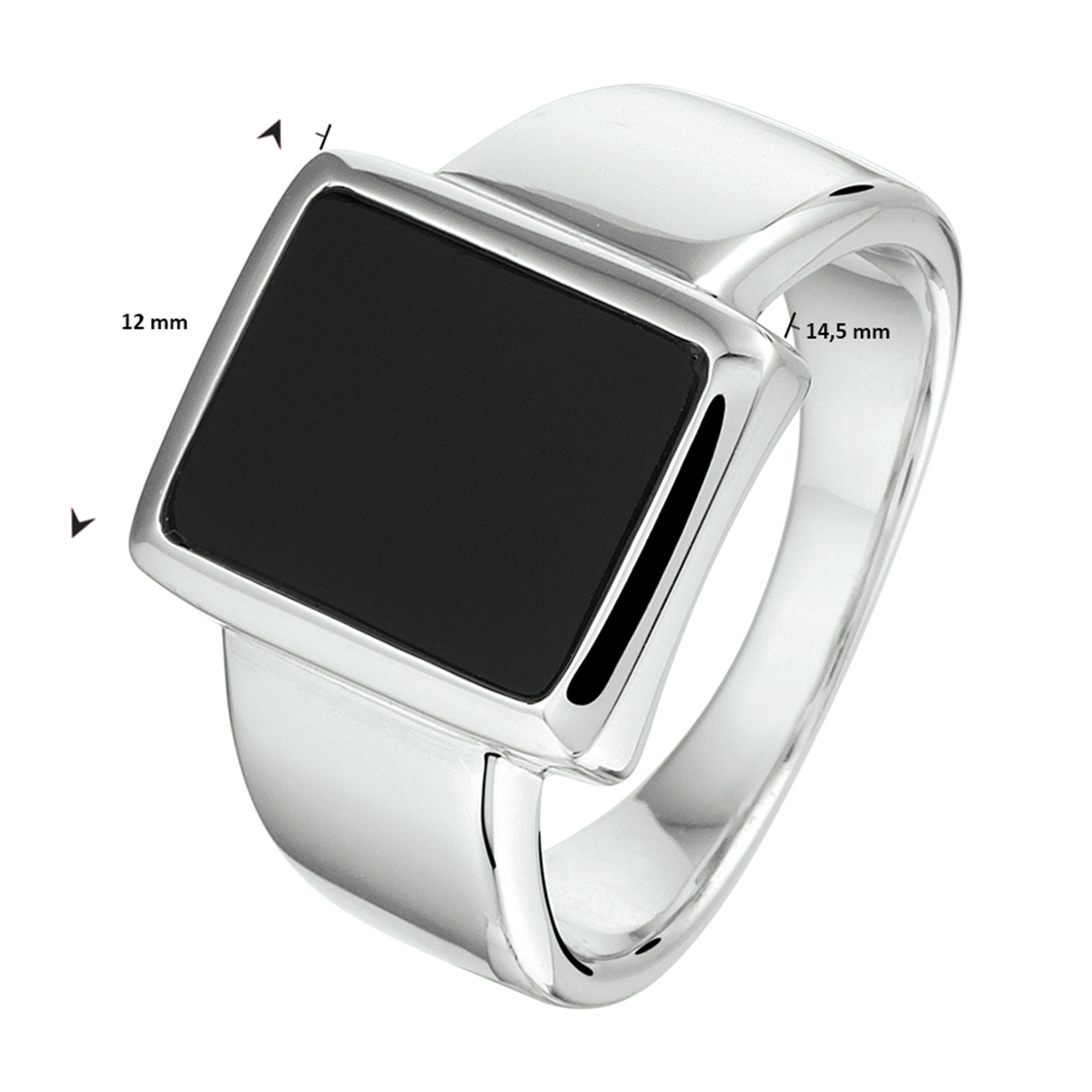 Gerhodineerd 925 zilveren zegelring uitgevoerd met een schitterende onyx. De ring heeft een breedte van 12mm.